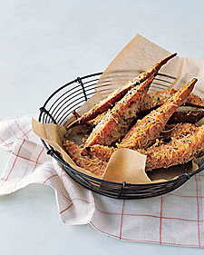 Dip the sweet potato first in the flour mixture, shaking off excess. Then dip each wedge into the egg white mixture until coated. Finally, dip the sweet potato in the Parmesan, pressing the exposed surface of the potato into the cheese. (Don't worry if some gets on the skin.) Transfer potato wedges onto the prepared baking sheet as you go.
